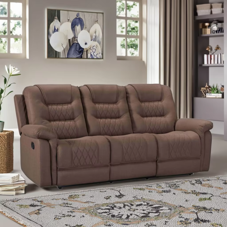 هذه الكنبة العصرية ذات ثلاثة مقاعد تأتي بتصميم قابل للتمديد مع آلية استرخاء يدوية (Manual Recliner)، مما يجعلها خيارًا مثاليًا لغرف المعيشة الحديثة والراحة اليومية.