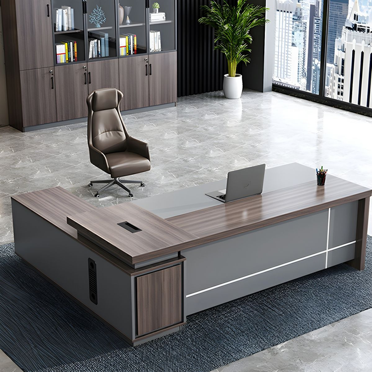 هذا المكتب الإداري الفاخر بتصميم حرف L يجمع بين الأناقة العصرية والعملية العالية، ما يجعله خيارًا مثاليًا لمدير المكتب أو المكتب التنفيذي.
