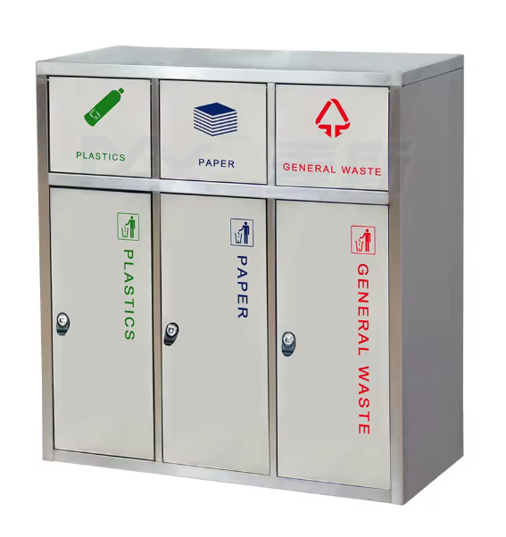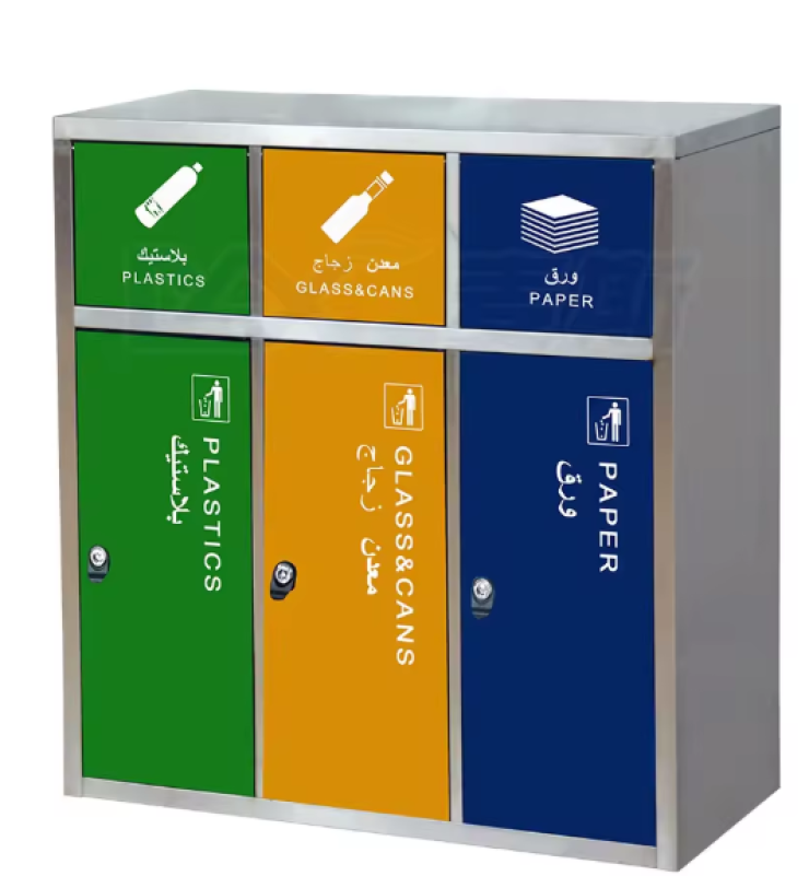 سلة نفايات عالية الجودة مصنوعة من الستانلس ستيل المقاوم للصدأ، مصممة لفرز النفايات في الأماكن العامة والمكاتب والمراكز التجارية. تتميز بهيكل متين، تشطيب ممتاز، وسهولة في التنظيف، مما يجعلها خيارًا مثاليًا للاستخدام الداخلي أو الخارجي