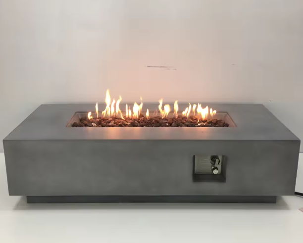 طاولة نار خارجية عالية الجودة بتصميم مستطيل أنيق، مصنوعة من مواد مقاومة للحرارة والطقس. مثالية للحدائق، الاستراحات، الشاليهات، والمناسبات الخارجية. تعمل على الغاز وتوفر دفء و ambiance راقي. سهلة الاستخدام وتأتي بقدرة 50,000 BTU
