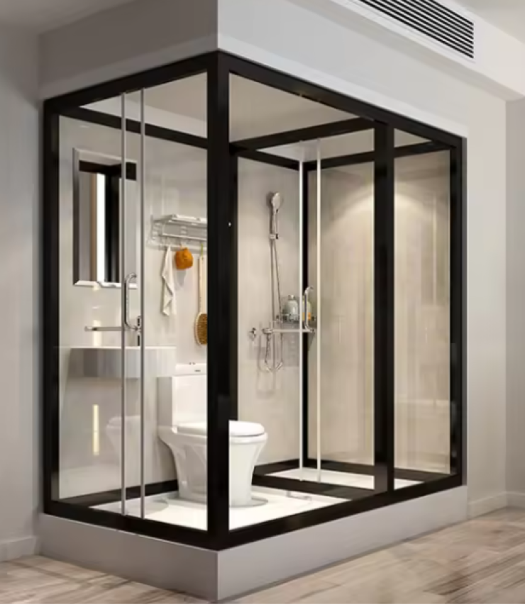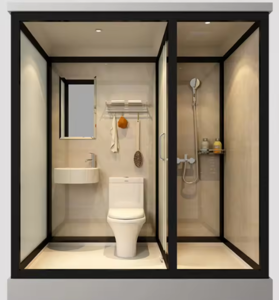 كابينة حمّام جاهزة بالكامل، مناسبة للحدائق، الاستراحات، المخيمات، المشاريع السكنية والشاليهات. جاهزة للاستخدام فوراً بدون تمديدات معقّدة. تصميم أنيق، مقاومة للماء، سهلة التركيب والتنظيف