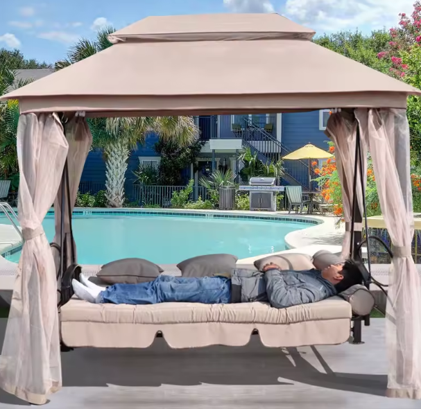 أرجوحة جلوس خارجية بتصميم بيضاوي مميز، مناسبة للحديقة أو البلكونة أو المساحات المفتوحة. مصنوعة من معدن متين مع وسادة مريحة، وتأتي جاهزة للاستخدام مع قاعدة قوية تتحمل الوزن. قطعة ممتازة للاسترخاء وتجميل مساحة الجلسات.