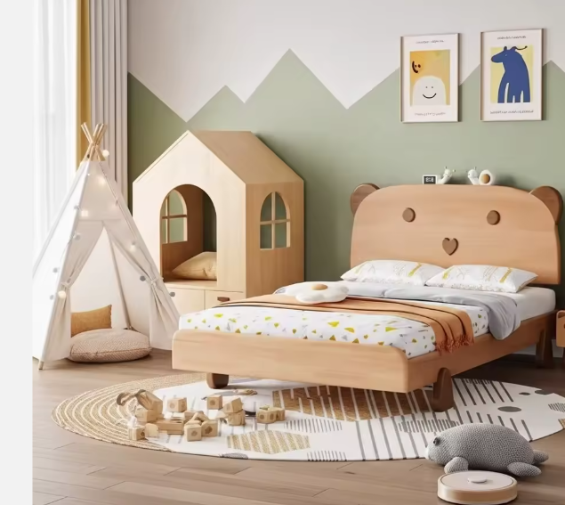 House-shape design, safety side rails, stable wooden frame
